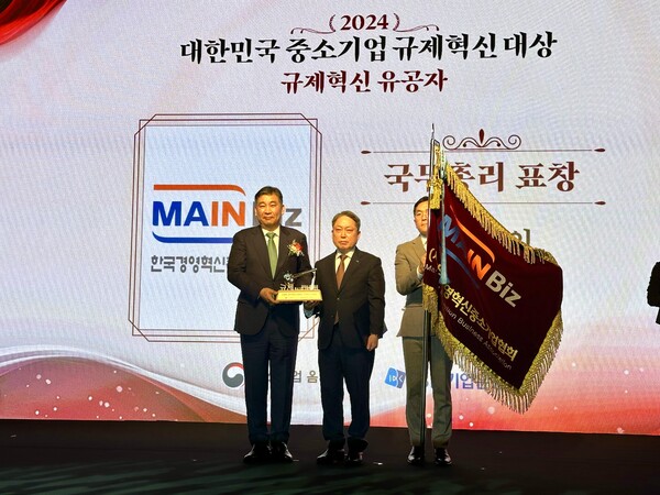 (사)한국경영혁신중소기업협회(이하 메인비즈협회, 회장 김명진)는 16일 서울 더플라자호텔에서 열린 ‘2024 대한민국 중소기업 규제혁신 대상’에서 ‘국무총리표창’을 수상하였다.